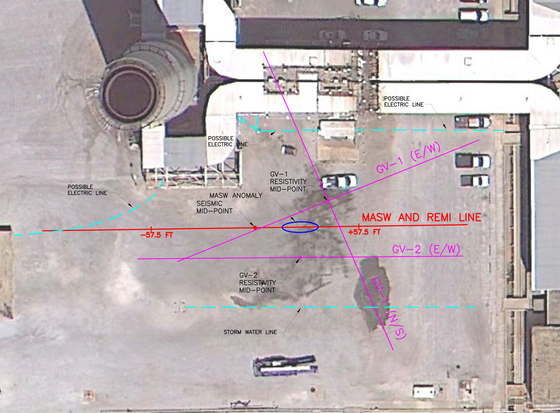 Our client was coordinating the conversion of an oil-burning power plant to natural gas. As part of the associated geotechnical study, GeoView, Inc. was tasked with determining the S-wave velocity and vertical resistivity structure at the site. For the seismic portion of the study, MASW (Multi-channel Analysis of Surface Waves) and ReMi (Refraction Microtremor) methods were utilized. Challenges for the project included multiple sources of subsurface and above-ground interference and the fact that the study needed to be conducted while the plant was in operation