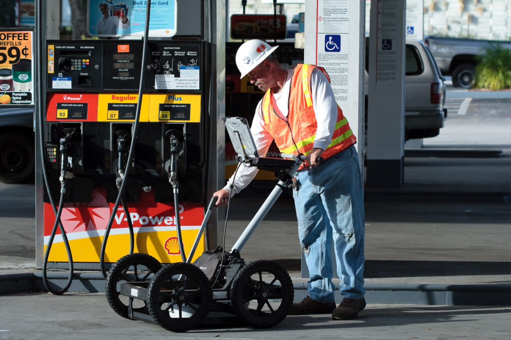 Environmental and engineering firms often are tasked with performing soil borings for monitor well installation as part of a Phase II Environmental Site Assessment. This task becomes more challenging when the borings are to be installed in gasoline stations, right of ways or other areas where there are numerous underground utilities that are either unmarked or not properly located. GeoView can assist in these situations by performing a private utility locate and marking the utilities within a 3 to 5 foot radius of each proposed borehole.