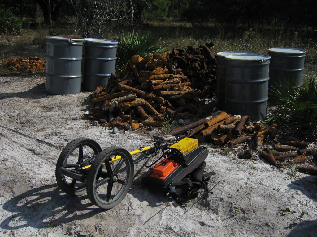 A geophysical investigation was conducted at a World War II era bombing range in the northeast Florida. The site was approximately 2,000 feet by 300 feet in plan dimension. Historical information indicated that MK23 practice bombs, 2.75” rockets, and 100 pound practice bombs may have been used near the site. The purpose of the geophysical investigation was to determine the presence and location of the ordinance buried at the project site. At the time of the investigation, the site was a slightly wooded field with only minimal evidence of the former use of the site.