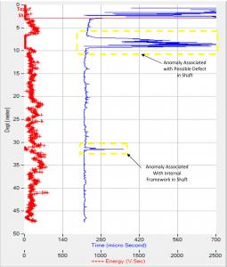 CSL Log Showing a Suspected Defect in the Concrete Shaft