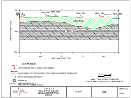 A total of 2,300 ft of Seismic Refraction