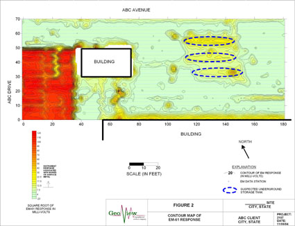 A Phase II environmental site assessment was conducted at a military base in the southeastern United States. As part of a Phase II environmental site assessment, GeoView was contracted to perform the geophysical site assessment. The purpose of the geophysical investigation was to determine the presence and location of any underground storage tanks that may be buried within the boundaries of the project site.