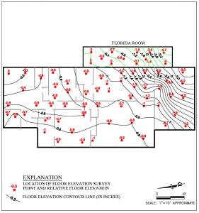 - Floor Elevation Studies are performed to identify the amount and direction of slope of the structure's floor